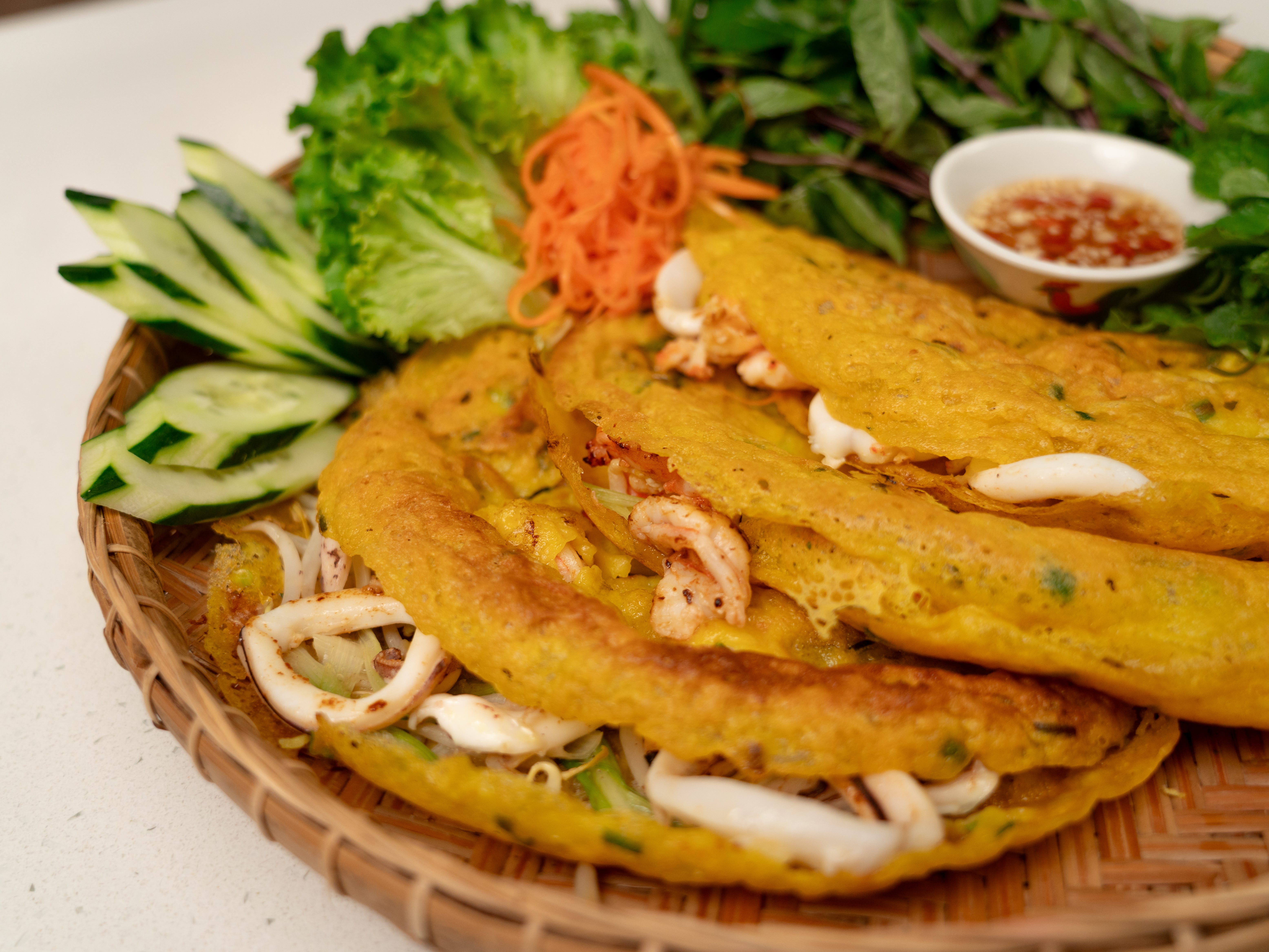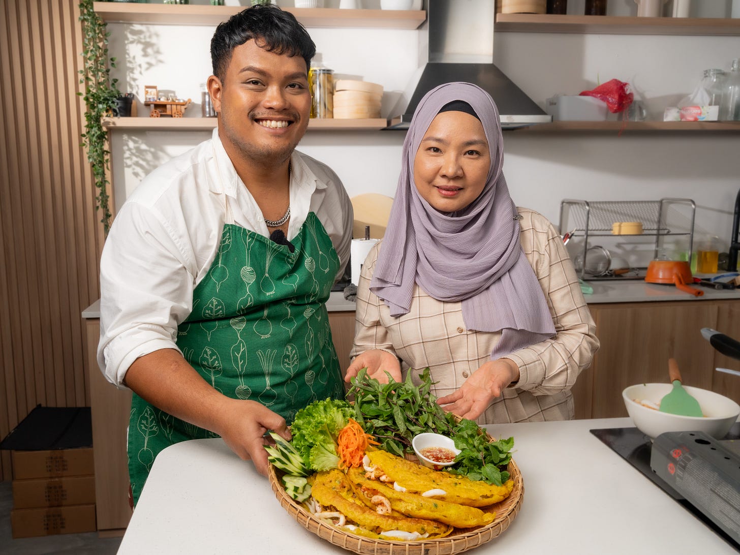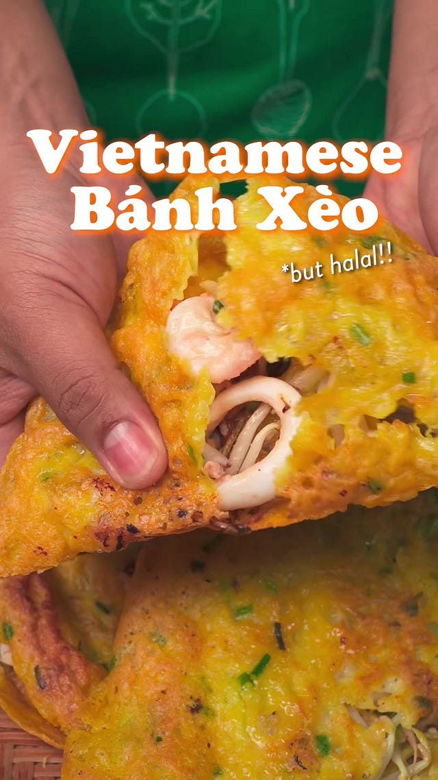 we learnt so many tips and tricks on our collaboration with Chef Emina, who hails form Mui Ne in southern Vietnam, including her hack of using soda water for the Bánh Xèo batter which somehow keeps the crepes super crispy for a long period of time after cooking. she also shared with us how different versions of Bánh Xèo exist in different regions in Vietnam - with the fillings varying from pork belly to tofu to even having duck meat, which is special in her hometown’s version of Bánh Xèo.