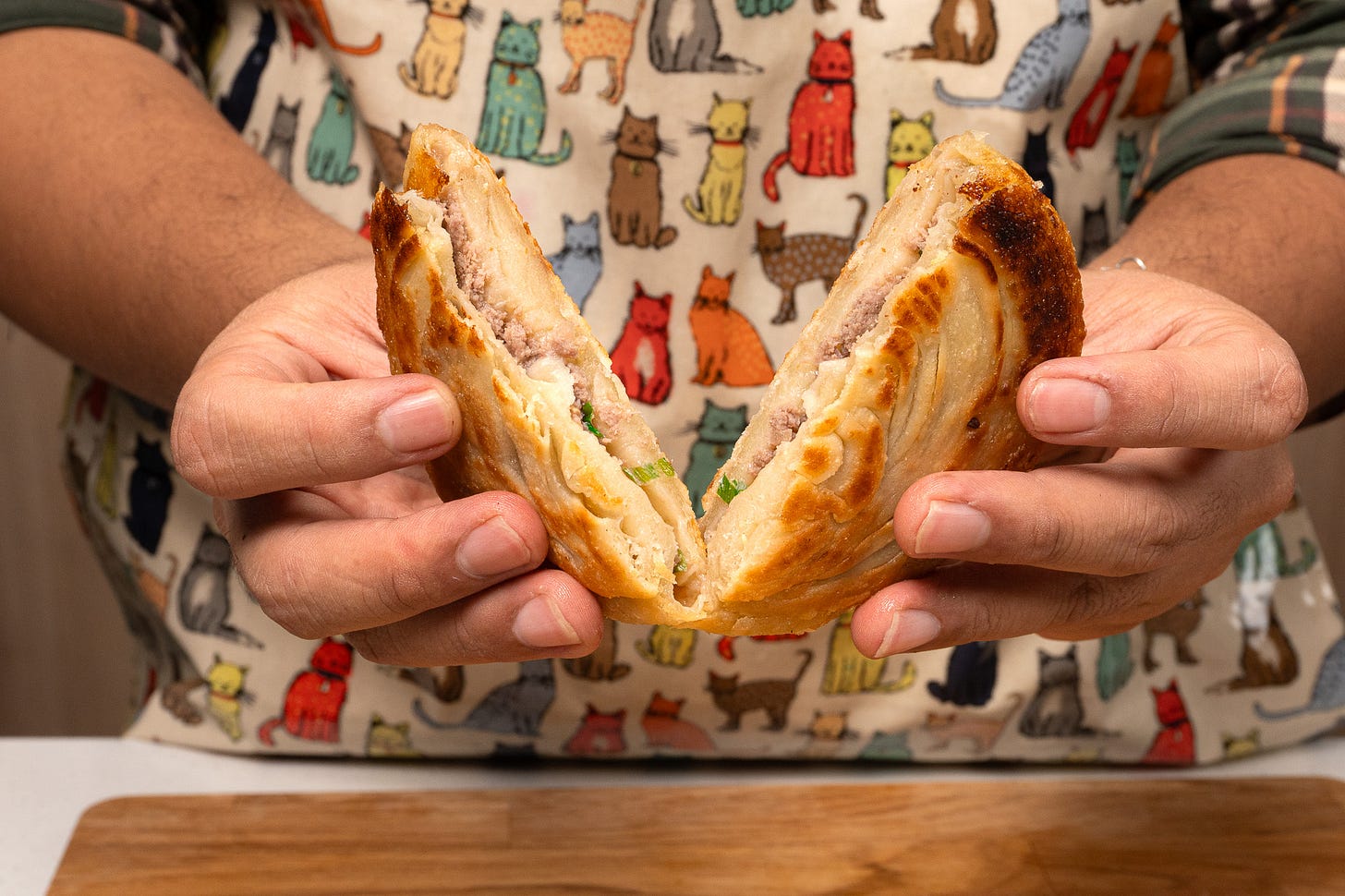 we’ve been following the VIRALITY of this Chinese meat-stuffed pastry, from seeing the crowds at the Mon Beef Roti spots in Kuala Lumpur to its prevalence in the Ramadan bazaars in Singapore! needless to say, it’s TIME we try making our own ones in the nOm kitchen.