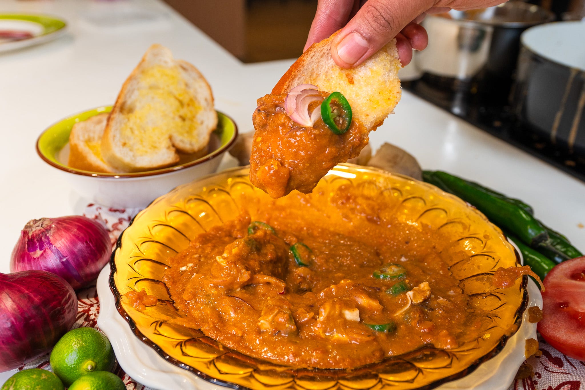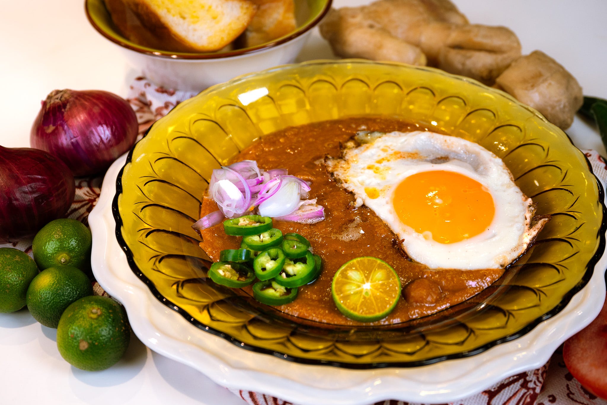 portion the the kacang pool onto a plate and top with a fried egg, sliced shallots, green chilli and a squeeze of calamansi. serve with choice of toast for dipping. you can also drizzle ghee, melted butter or olive oil onto the kacang pool if desired.