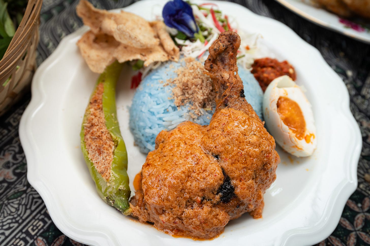 Nasi Kerabu - with Ayam Percik & Stuffed Green Chillies!