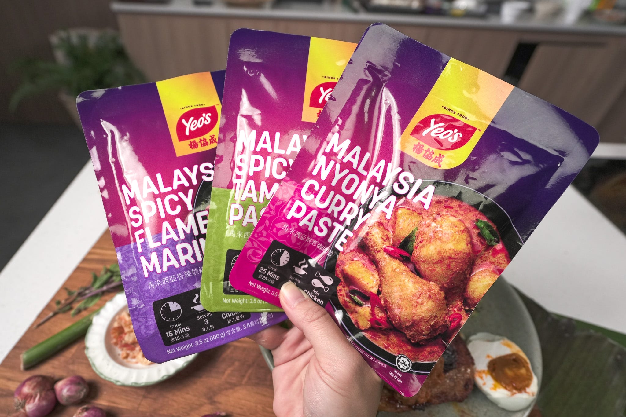 2 packets Yeo’s Malaysia Spicy Flamegrilled Marinade