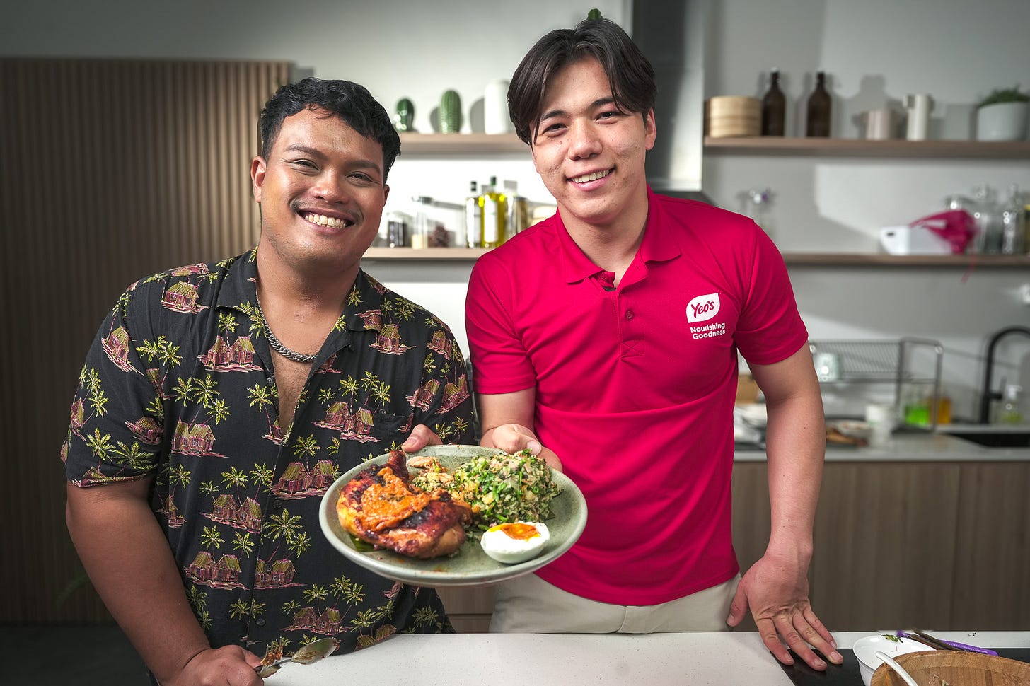 on a recent cooking session with national Kitefoil athlete Max Maeder, we cooked up a hearty dish of nasi ulam (rice tossed in local herbs) & a delicious, coconut Ayam Percik, using Yeo’s Malaysia Spicy Flamegrilled Marinade. needless to say, the meal surprised our tastebuds - the rich, smoky and coconutty Ayam Percik was complimented with the herbaceous and fresh nasi ulam and made for a meal Chef Azfar and Max both couldn’t forget!